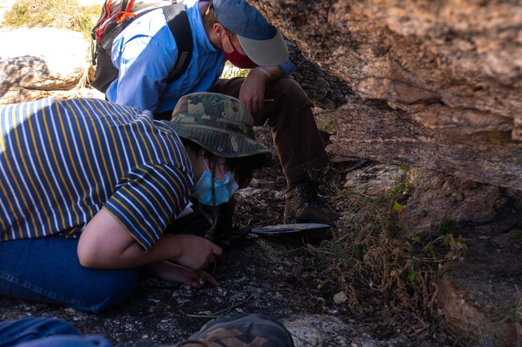 The second day of Earth Camp, campers get introduced to the biomes of Mt. Lemmon. It begins in the desert at the Babad D’oag Overlook and ends in the mixed conifer forest at the peak. By taking several stops on the way up, students experience different biomes as the elevation rises, the same biomes one would encounter traveling from Mexico to Canada. Students and mentors make observations of the plants, animals, and geology at each stop, and then work together to analyze patterns and differences. After each exploration, a Desert Museum staff member teaches the important or specific natural history of that biome. At one such stop, campers scrambled down rocks in a wash, explored every nook looking for frogs, spiders, and one of the campers remarked: