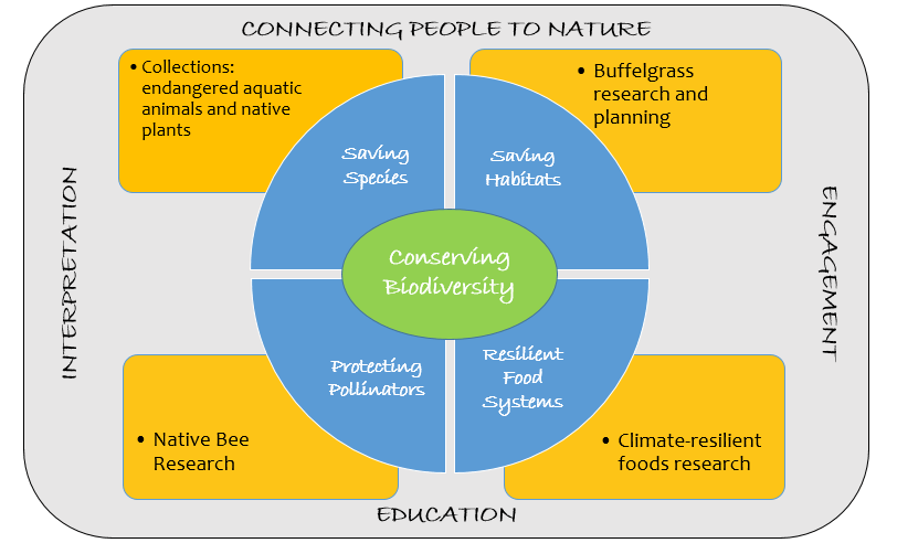 Today, we are building upon the natural history discoveries of Desert Museum scientists and their collaborators to develop a deeper understanding of interconnected natural and social systems. The Museum’s science and collections teams continue to work at the nexus of invasive species, pollinators, endangered species, and native and heritage foods by applying field studies, ecological modeling, genetic analysis, and husbandry research, and collaborating with social scientists to provide support for future decisions that impact biodiversity, the provisioning of nature services, and human well-being.