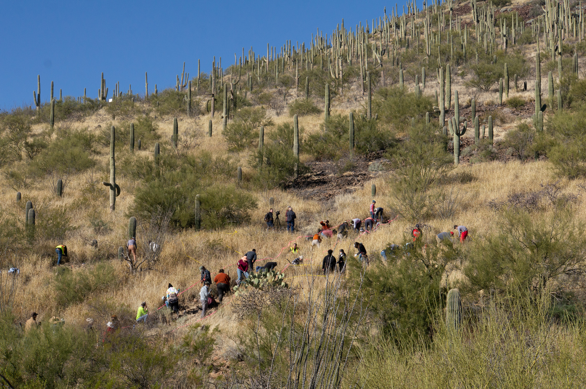 Building upon the Museum’s history of ecological research—we aim to develop a holistic approach to maintaining ecosystem function by understanding vegetation dynamics at the landscape scale under a regime of changing climate and introduced species. We are currently invested in research to better understand the impact of fire on saguaro mortality, and to understand how the actions and interactions among social actors (e.g., HOAs, government agencies, volunteer orgs, etc.) influence the buffelgrass invasion.