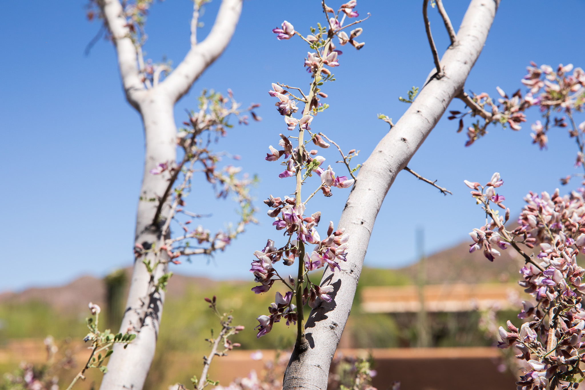 It is one of several woody legumes that are typical of the Sonoran Desert, however, Olneya tesota has enough phylogenetic differences to be considered the only species in its genus. It is distinguished by having compound leaves that grow in pairs, with small opaque green elliptical leaflets, inflorescences that grow on any side of the stem (not just at the end of a branch), and the pods are rounded. These trees grow slowly and can reach up to 50 feet tall by 50 feet wide. Few activities are more pleasant than sitting under a large flowering opo, with its zygomorphic lavender-pink flowers.