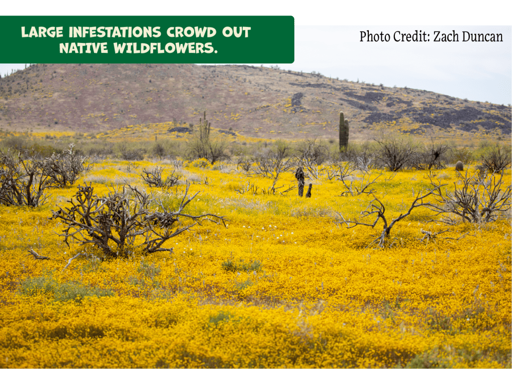 You might be having similar thoughts when driving around Northwest Tucson and driving to and from Phoenix and Tucson. The plant that you are able to see at all times of the year throughout its varying life stages along I-10 from the fluorescent green seedling to the dried up rusty colored plant is in fact a highly invasive plant. It is STINKNET, you may have heard about it in recent years.