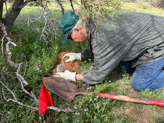 Removing stinknet is a way of conserving saguaros as well. Intense fires caused by invasive plants like stinknet have killed hundreds of thousands of saguaros in the last few years. This is why Tucson Audubon is planting thousands of saguaros in areas that were impacted by fires. Saguaros are slow growing plants, so by planting nursery grown saguaros that are already 2 years old, the population has a head start in establishing new generations. In a few decades, these saguaros will provide food and shelter to over 100 species of wildlife. So if you care about your local wildlife and you see stinknet near a saguaro consider removing it and you too can save our saguaros!