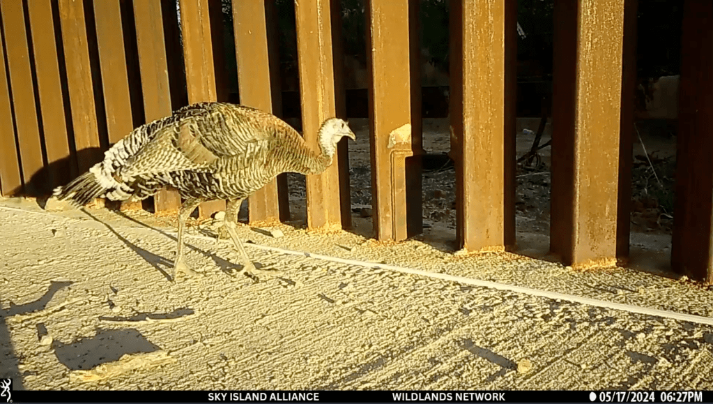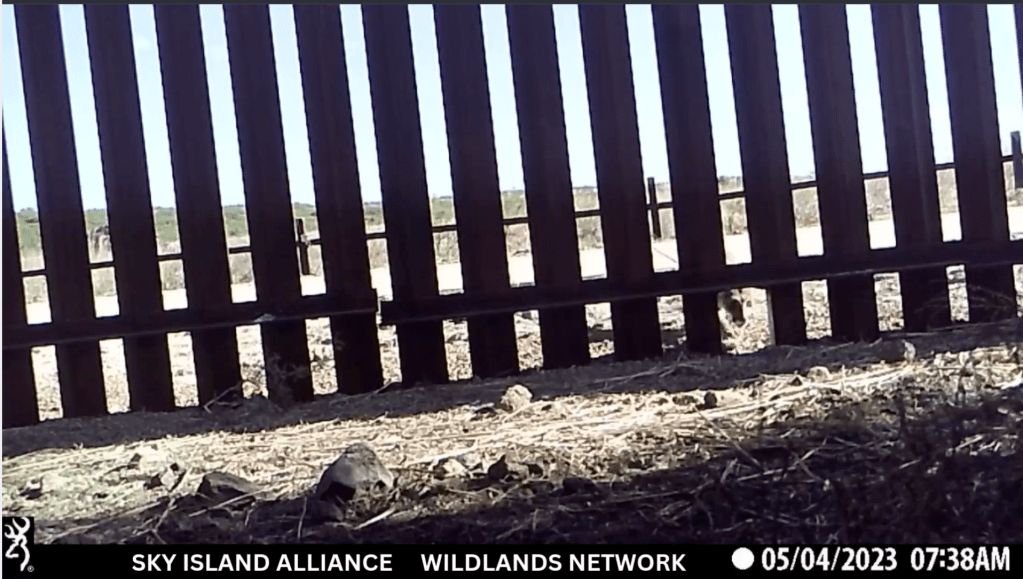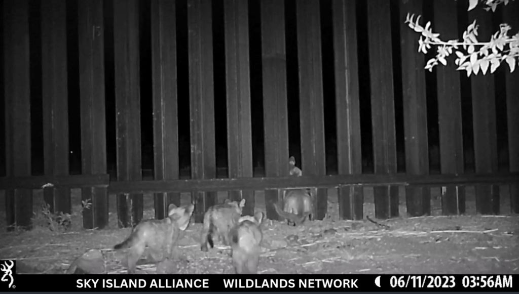 The hope for reestablishing connectivity for many species at the wall is linked to the installation of wildlife crossing structures. There are 13 small wildlife openings installed in the border wall along the 70-mile continuous stretch of border wall in Arizona from the Huachuca Mountains eastward to the state line with New Mexico. These small openings are indeed small – they measure just 8.5 inches wide and 11 inches high. They are the size of a standard piece of printer paper. Amazingly, we discovered that javelina, mountain lion, and coyote are 16.7 times more likely to cross through border wall when they encounter one of these small openings, called “cat doors” by Border Patrol. While these small passageways will not allow bear, deer, turkeys, and humans to cross, they greatly improve connectivity between the U.S. and Mexico for many animals and now is a great time to install more along the border.