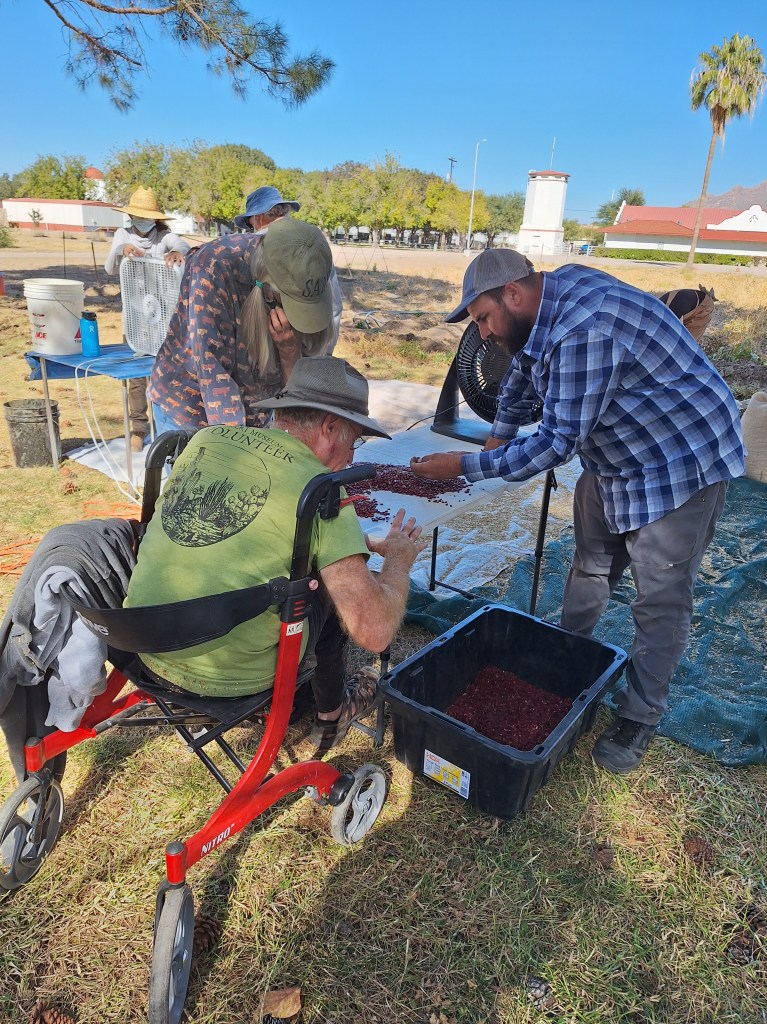 Additionally, we are part of the Arizona Alliance for Climate-Smart Crops, a $4.8M project led by the University of Arizona and funded by the USDA to develop a resilient, water-efficient food future for Arizona. We are testing desert-adapted crops like agave and prickly pear at the University’s Agricultural Center, while also growing hardy beans and cowpeas. With a whole lot of sweat and elbow grease from volunteers, we harvested over 300 pounds of Anasazi red beans and Bisbee black cowpeas, two crops that offer Arizona farmers drought- and heat-tolerant options to keep growing food with less water! In July, we partnered with Mission Garden for a tasting event on prickly pear. Future programs aim to raise awareness and build a market for climate-smart desert foods.