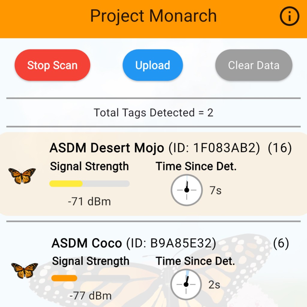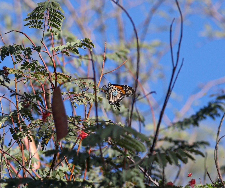 Now, researchers and enthusiasts can track individual monarchs using GPS-equipped tags! In October 2025, the Southwest Monarch Study began using these new tags on monarchs in Arizona. These ultralight tags communicate with Motus towers, but outside the range of these towers, movements are recorded through the Project Monarch Science app by community scientists.